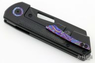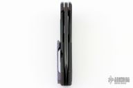 This Production Yeager by Brian Brown features a black wharncliffe style blade. The handle has a black tumble finish titanium frame with mokuti pivot collars, matching tip up clip and black tumbled backspacer. Black canvas micarta inlays. Comes with a zippered case. Has a couple light scuffs, excellent condition otherwise.