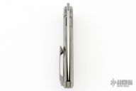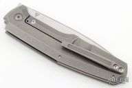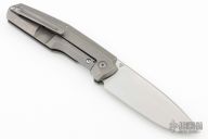This framelock was designed by Philippe Jourget and manufactured by CKF. This knife features a satin finished drop point blade with a file worked thumb rest. The handle has a tumbled titanium frame with a matching backspacer and tip up pocket clip.  Includes a COA and a padded zippered case.  S/N 225. Dated 09/21.  Has a couple light scuffs, otherwise excellent Condition.