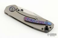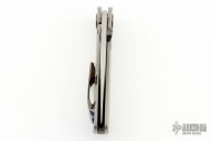 The new Rampage model is a Collaboration with CKF and Copperhead Metalworks. It features a two-tone Bohler M390 blade with titanium handles. It has ZircuTi pivot collars, thumb stud collar, and pocket clip. It has a unique oversized titanium skull thumb stud to open it with. Inside the scales you will find internal milling detailed with CKF & MRBS branding.