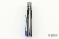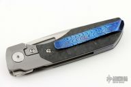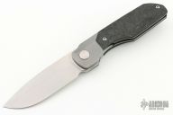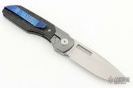 This Synapse Second Run Folder by Vero Engineering features a hand rub satin finished blade with notched thumbrest and flipper. The handle has a tumbled and bead blast finished titanium frame with marble carbon fiber scales, mokuti tip up clip with hidden screws and mokuti backspacer. Rides on bearings, nice detent, lockup and blade seating. Comes with zippered case and COA #432. Has a couple light scuffs, otherwise Excellent condition.
