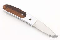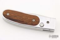 This push button automatic by Z Hunter Knives features a mirror polished blade. The handle has a brushed aluminum frame and wood insets. Good solid lockup - no blade play. Some scratches/scuffs on handle, otherwise good condition. #083