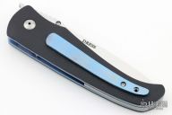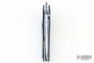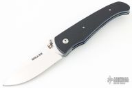 This Sela Linerlock by Andreas Erasmus features a Lohmann L-oR 4528 Stainless blade with a single thumbstud and notched thumbramp. The handle has black g10 scales, anodized titanium liners, backspacer and tip up clip. Nice lockup and blade seating. Comes with a zipper case and COA dated 5/25/2021. Missing a screw in the clip. Has some light scuffs and scratches otherwise great condition.