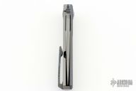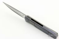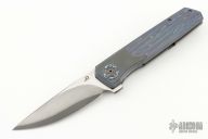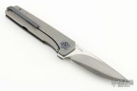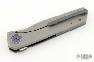 This Framelock Flipper by JD VanDeventer features a Takefu blade with satin flats and notched flipper. The handle has mokuti scales with zirconium bolster insert, Mokuti backspacer, and matching tip up clip. Mokuti pivot collar and zirconium pivot. Comes with Velcro case and COA dated 2022/05/02. Has a couple light scuffs and scratches, excellent condition.