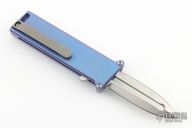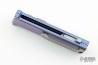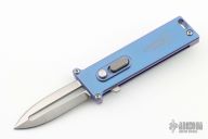 The Tallin is a sleek, California Legal Single Action Automatic knife.  The Blade is a little under 2 inches in Stainless steel with a dagger grind  – a blade that screams tactical and combat but with the clean elegant lines of pure harmony.  The handle is titanium that is blue/purple anodized.  Comes with original box. Excellent condition.