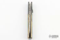 "Ever since I can remember I have had a fascination with knives. My grandfather gave me my first pocketknife when I was 5, and it was that moment that did it. I started making knives by taking apart my mothers kitchen knives. My parents thought that there was something "wrong" with me because I had a fascination with sharp objects. That all changed when I took them to a local knife show and showed them a whole room of people interested in knives. I seriously began making knives when I was 16. I have been making knives for over 25 years. For the past 10 years I have mainly concentrated on making folding knives and automatics. I mainly concentrate on making one-of-a-kind folding knives of my own design, but I do occasionally make a few fixed blades. I specialize in unique file work patterns, and I also do simple carving and some of my own sheath work. For steels I mostly use Damascus, but also use 154CM, CPM154, D-2, 1095, W-2 and others. Handle materials include Exotic Woods, Stag, Pearl, and various types of Ivories including Elephant, Mammoth, and Walrus. As far as knife builds go, I think I am going to concentrate on building more elaborate autos as well as converting some of my older designs into autos. I appreciate the challenge of making an auto, and it keeps knife making exciting for me.”