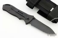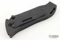 This Point Man Auto from Masters of Defense features a black coated spear point blade with swedge, notched thumbrest, dual thumbstuds and partially serrated edge. The handle is comprised of black anodized aluminum with non slip inlays on the "A" side over an inlaid steel lockbar. Black stainless steel tip down clip. Lanyard hole in pommel. Includes a nylon sheath.  Excellent Condition.