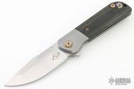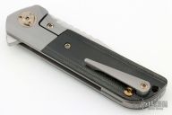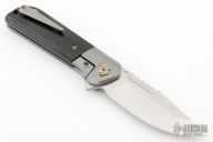 This Lanny V2 is a Liong Mah design executed by Reate Knives. It features a satin finished clip point blade with notched thumbrest, fullers and flipper. The handle has a bead blasted titanium frame and black canvas micarta scales, titanium backspacer and tip up clip that is reversible for left or right hand carry. Satin titanium hardware and lanyard hole in pommel. Includes padded/zippered case. Has a couple light scuffs otherwise excellent condition.