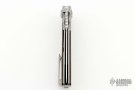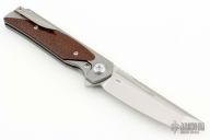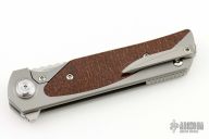 This Warrior 2 flipper by Reate is a Liong Mah design, it features a satin finished blade with a notched thumbrest and flipper. The handle has a milled and bead blast finished titanium frame with burlap micarta inlays, custom pivot, tip up titanium clip with ceramic ball, stainless lockface insert. Rides on bearings, nice detent, lockup and blade seating. Comes with zippered case. Excellent condition.