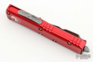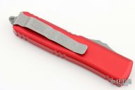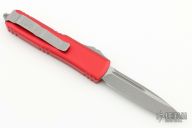 This UTX-85 by Microtech features an apocalyptic finished blade. The handle has a red aluminum frame with blasted hardware and tip down clip. Comes with original box and papers. Dated 06/2023 and s/n 101597. Excellent Condition.