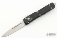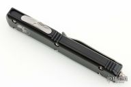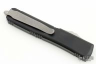 This Ultratech OTF automatic features a S/E stonewash finish blade with a standard edge. Contoured handle and stainless steel clip. Glass breaker. Serial number 239001 and dated 03/2022. Has a couple light scratches, otherwise excellent condition. Comes with original box and papers. Comes with original clip, extra after market clip, and is also fitted with an after market clip