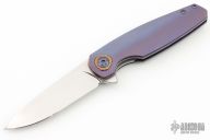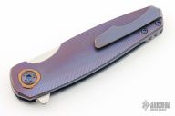 This Morpheus by Holt Bladeworks features a near mirror finish blade with a notched thumbrest and flipper tab. The handle features a Feather milled titanium frame with anodized finish tip up pocket clip and hardware. Nice detent, lock up and blade seating. Includes the original zipper case and papers. Also includes tool. Excellent condition.