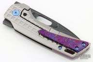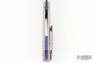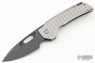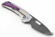 This Nymble Framelock Flipper by EMP EDC features a black finished blade with notched tumbrest and flipper, and a thumbhole. The handle has a bead blast and frag pattern milled frame, upgraded mokuti backspacer and tip up clip, upgraded titanium hardware. Comes with EMPEDC box. Rides on bearings, nice detent, lockup and blade seating. Excellent condition.