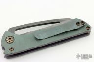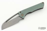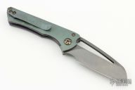 This Nurse flipper by Gavko Knives features a stonewash and acid wash finished blade with thumbhole. The handle has a blasted and anodized titanium frame with sculpted tip up clip, anodized pivot, anodized screws. Rides on bearings, nice detent, lockup and blade seating. Comes with a zippered case. Excellent condition.