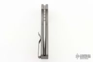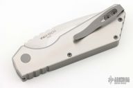 This Pro-Strider PT by Pro-Tech and Strider Knives features a Mike Irie hand ground and mirror finished blade with notched thumbrest. The handle has a satin finished stainless steel frame with blasted edges, stainless steel tip up clip. Includes the original box and papers. Excellent condition.