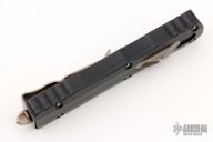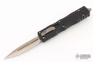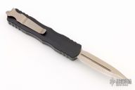 This Dirac OTF automatic by Microtech features a D/E bronze blade. The handle is black aluminum with bronzed stainless steel tip down clip and hardware. Serial number 13117 and dated 02/2023. Comes with original box and papers. Has a few light scuffs, has been resharpned, otherwise good condition.