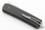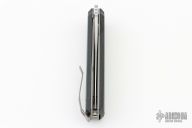 Folding knife, satin finish on M390 steel blade, ball bearing system, liner lock, grade 5 Titanium scales, carbon fiber handles, reversible titanium clip, comes in a zipped cordura pouch