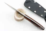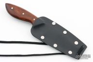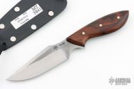 This knife features a San Mai blade with a full tapered tang construction. .127" Blade Stock. 1.098" Blade Depth. The handle has wood scales over black liners. Includes a kydex sheath with a neck lanyard. Excellent Condition.