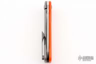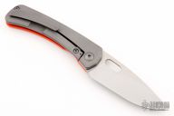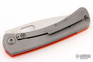 This Lamia Gen3 Friday 13th Edition by SPK Unlimited features a stonewashed blade with thumbhole. The handle has an orange cerakote and stonewashed and milled titanium frame with tumbled hardware, backspacer and tip up clip with hidden screws. Comes with a zippered case. Excellent condition.
