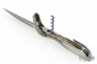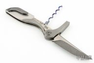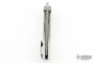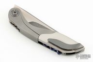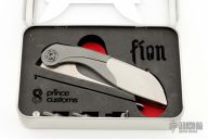 This Fion #004 by Prince Customs features a two-tone blade with hand honed flats. The handle has a stonewashed and milled titanium frame with laser engraved titanium liners, tip up titanium clip with hidden screws. Has hidden corkscrew in the spine of the knife. Very cool design. Rides on ceramic bearings. Comes with original box, tools and COA dated 06/2021. Has a couple light scuffs, otherwise excellent condition.