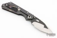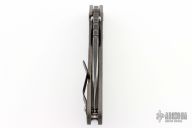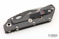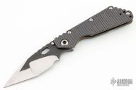 This Mick Strider custom SMF framelock folder has a two-tone nightmare ground blade with notched thumbrest and thumbhole. The handle has a flamed titanium frame with laser engraved titanium clip. Includes Lock Bar Stabilizer for maximum reverse lock retention. Nice lockup, blade seating and detent. Comes with box and MSC zipper case. Has a couple light scuffs, otherwise excellent condition.