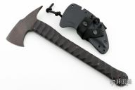 A combination tool developed for Military and Law Enforcement use, the WK Combat Axe is made for breaching and combat applications. The user has easy access with a fast draw carrier. An integral glass breaker extends beyond the end of the handle. The WK Hammer Combat Axe is basically the same axe as the WK Combat Axe, but with a hammer pole rather than a spike. It is a great woodcraft or field axe or performs well as a breaching axe when hammering is part of the operation. A partial cord wrapped upper handle option is available. If the handle is damaged under the head, a new cord can readily be installed. The cord is also an excellent emergency resource. Axe Specifications Axe steel: 80CrV2 Black oxide no-glare finish Head length: 5 7/8" Overall length: 13 3/4" Blade thickness: 3/8" Skeletonzied full tapered tang Integral Glass Breaker Partial cord wrap optional Sheath Fast draw carrier Lined Kydex® HD shockcord quick-release retention system Nylon belt straps with Mil-Spec Pull-The-Dot™ snaps Designed for multiple carry options. Has some scuffs, has a nick in one of the scales, otherwise good condition.
