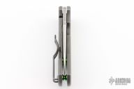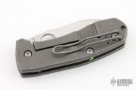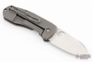 This Techno 2 from Spyderco has been reground by Tom Krein and has a satin finish blade with thumb hole. Tumble finish titanium frame. Has a couple light scuffs, otherwise excellent condition.