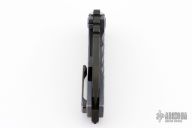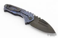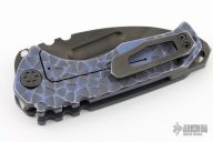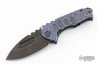 This Praetorian Genesis T by Medford Knife and Tool features a PVD drop point style blade with fullers and notched thumbrest. The handle has an anodized and carved titanium frame with a titanium tip up pocket clip and a D2 backspacer/glass breaker with lanyard bail.  Includes vault style case and Medford box. Excellent condition.