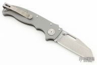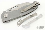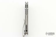 The AD20.5 by Demko Knives features the impressive Shark Lock and an even more impressive price point. The Shark Lock mechanism is situated on the spine of the knife and operated with a ramp-like ‘fin’, allowing you to flip the blade open and closed at will. It's probably the best thing about this knife and design, how quickly it can be deployed and ready for action. It acts as a blade launcher and a little wrist action is all it needs. This one has a stonewashed blade and bead blasted and texture milled titanium handle. Comes with plastic tube and extra clip. Excellent condition. Comes fitted with LynchNW deep carry clip.