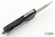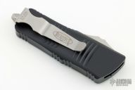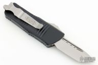 This Troodon Mini OTF automatic by Microtech knives features a stonewash finished tanto blade, and a black aluminum handle with tip down carry. Glass breaker. S/N 2150. Dated 05/2021. Comes with original box and papers. Excellent condition.