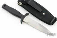 This Command I Boot Knife has a satin finished stainless steel spear point partially serrated blade with hidden tang. .235" Blade Stock. .943" Blade Depth. The handle is black aluminum with double guard and lanyard hole. Comes with a black nylon sheath with button closure and belt clip, original box. Has a couple light scuffs and scratches, otherwise excellent condition.