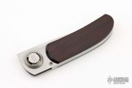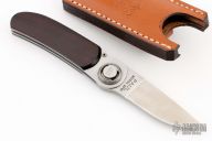 This Paul knife was part of the first run of Paul knives Gerber ever manufactured. This folder has an axial locking mechanism. Has wood scales. Comes with original clam shell box and a brown leather sheath. Has a couple light scuffs otherwise excellent condition.