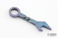 The Atwood Twisted Tim tools are made of titanium or hardened knife steels.  Features include a 5/16" hex wrench which doubles as a cap lifter, and a 7/16" wrench at the tail.  The "nose" serves double duty as both screwdriver and pry tip. Comes with original bag and card. Excellent Condition.