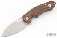 The handle fills even larger hands well, due to the nicely rounded scales and good ergonomics. Speaking of the handle, we chose to blast the black G10 and canvas Micarta for grippyness and great feel.
