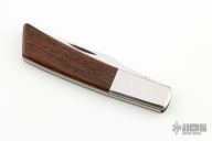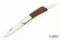 This Silver Knight by Gerber features a mirror polished blades with nail nicks. The handle has stainless steel bolsters, rosewood scales, brass liners, and a stainless steel backspacer. Has a couple light scratches, otherwise excellent condition. Comes with original sheath.