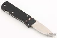 This Rolox Viper Lightweight Sliding Belly Lock has a satin finished stainless steel drop/ spear point blade with false top edge and notched thumb rest. Handle is black composite, and stainless steel belly/ lock spacer. Excellent condition.
