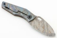 This SJ75 Baby Huey framelock folder by Strider Knives has a digicam blade and a tan G10 and digicam frame with matching tip up titanium clip. File work on blade spine and inner edges of frame along the spine. Blade is centered when closed and locks up with no play. Has some light scuffs, otherwise excellent condition.