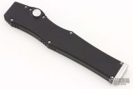 This Custom Halo V features a high polish hand ground Nightmare grind blade with fullers. The handle is black anodized aluminum and stainless steel charging handle dated 03/2014, polished hardware. Comes with original box and zipper case. Has a couple light scuffs and scratches, otherwise excellent condition.