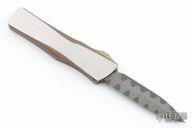 Combat Troodon D/E Spike Grind VF Ladder Pattern Core Damascus - Two-Tone Bronzed Hand Rubbed Satin/Bark Finish Stainless Steel W/ Bronzed Hardware S/N 022