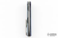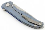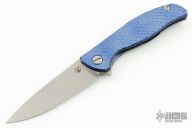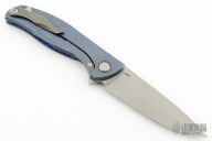 This Hati by Shirogorov Knives features a stonewashed blade with notched thumbrest and flipper. The handle has a blue twill carbon fiber and stonewashed and anodized titanium frame with matching tip up clip and backspacer with lanyard hole. Rides on bearings, nice detent, lockup and blade seating. Comes with original box and papers. Excellent condition.