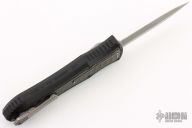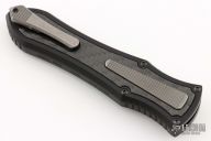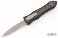 This knife is a Deadlock Model C by Grant and Gavin Hawk. It has a double-edged stonewashed blade. The handle has a carbon fiber and black aluminum frame with a tip down spring clip, titanium. The thumb slide on the handle is also titanium and handle has titanium overlays. Grant and Gavin Hawk set out to create a double action OTF with no blade play.... They did it, NO blade play. Comes with original cloth case, card and tool. Excellent condition.