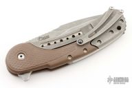 This Field Grade Bodega has an acid tumbled spear point blade with IKBS, flipper and notched thumbrest. Handle is earth G-10 with a tumbled titanium lock and titanium tip up clip, titanium backspacer. Nice detent, lockup and blade seating. Excellent Condition.