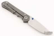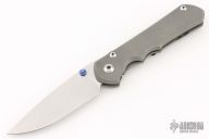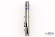 This Large Sebenza 25 by Chris Reeve features a tumbled blade with dual anodized thumbstuds. The frame is bead blasted titanium with matching tip up clip. Nice detent, lockup and blade seating. Has scratches and scuffs, otherwise good condition. Comes with original slip sheath.