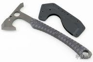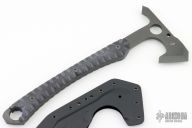 This Warrior Hawk by Spyderco was designed by Laci Szabo. It features a black D2 blade and tang with spike pole, .320" blade stock and 2.426" blade depth, full tang construction. The handle has black G-10 scales with an extended tang. Comes with kydex sheath, and original zipper case. Excellent condition.
