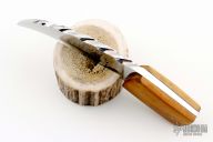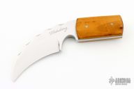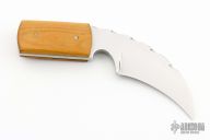 This claw knife by Harding (please let us know if you know this markers full name) features a mirror polished blade with fileworked spine, .190" blade stock and 1.081" blade depth, full tapered tang construction. The handle has wood scales with nickel silver pins. Has a couple light scratches, otherwise excellent condition.