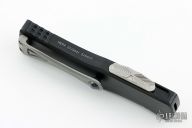 This Hera by Microtech Knives features a stonewashed blade.  The handle has a black aluminum frame with a tip down titanium clip with ceramic ball inset. Dated 07/2021. S/N 577.  Comes with original box and papers. Has a couple light scratches, otherwise excellent condition.