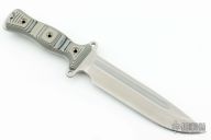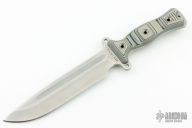 This Team Gemini Light Brigade by Busse Combat Knife Company features a drop point competition finished blade with fullers, .210" blade stock and 1.600" blade depth. The handle has tan/black G-10 scales over full tang construction. Exposed tang pommel with lanyard hole. Excellent condition.