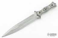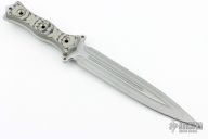 This FMV8 by Busse Knives features a competition finished double-edged blade with .246" blade stock and 1.361" blade depth, full tang construction with black/tan G-10 scales. Excellent condition. This one is sterile with no markings.