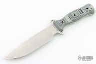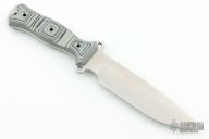 This Nano Team Gemini by Busse Combat features a satin finished blade with .181" blade stock and 1.464" blade depth, full tang construction. The handle has black/tan G-10 scales. Excellent condition.