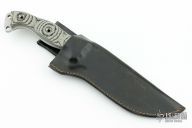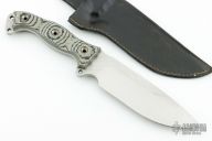 This Nano Fusion Natural Outlaw features a competition finished drop point blade with .213" blade stock and 1.796" blade depth, full tang construction. The blade material is the famous INFI. The handle has black/tan G-10 scales with a lanyard hole at the butt.  Has some scratches, otherwise good condition.  Comes with a custom brown leather sheath.