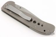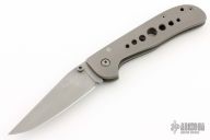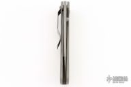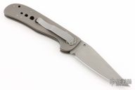 This knife by Crawford Knives features a bead blast finished blade with false top edge and single thumbstud. The handle has a bead blasted titanium frame with a tip down stainless steel clip. Comes with a zipper case. Has some light scuffs and scratches, otherwise great condition.